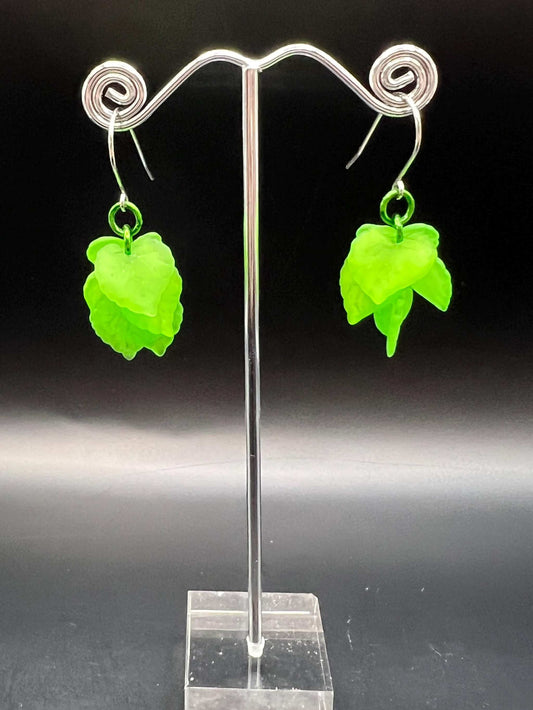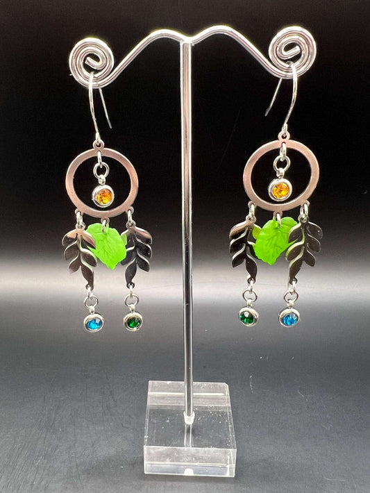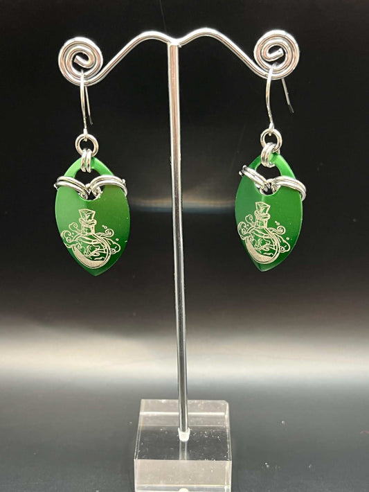 Acrylic & Aluminum Green Elven Leaves Chainmaille Earrings Measuring Approx. 2" Long