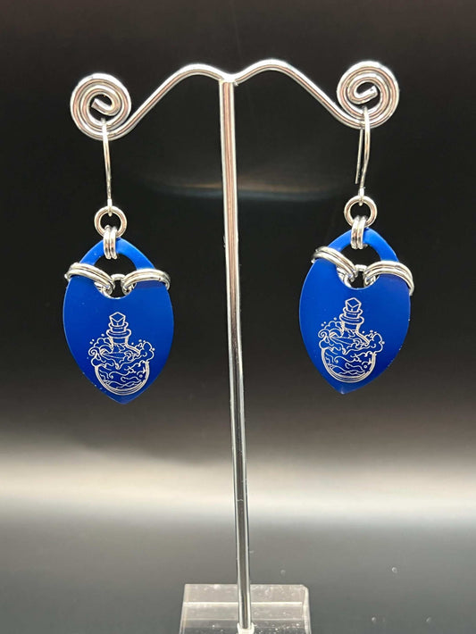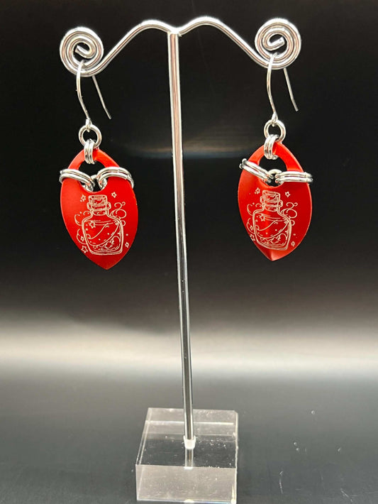 STAMINA Potion Bottle Engraved Scale Earrings Measuring Approx. 2.5" Long