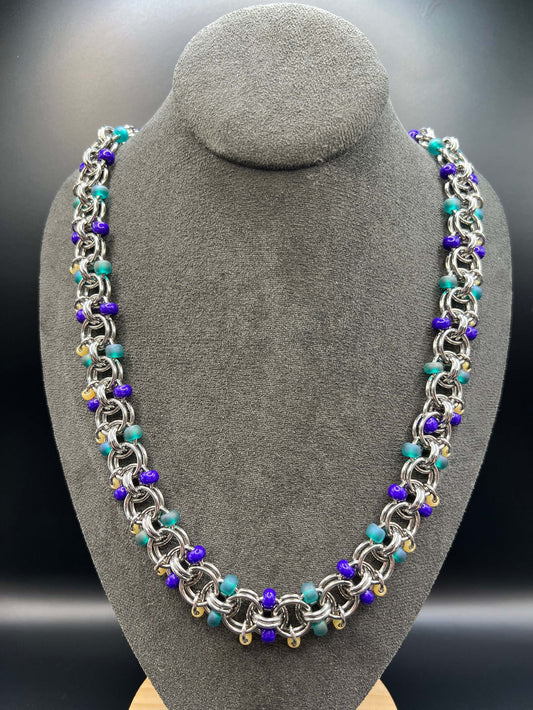Glass Beaded Helm Weave Solid Stainless Steel Chainmaille Necklace Measuring Approx. 22-24" LongRegular price $149.99 CADRegular priceUnit price / per-