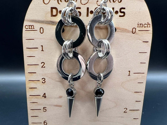 Black-Accented Spiked Stainless Steel Earrings, Stainless Steel Hooks Measure Approx. 3.25" in Length Including HookRegular price $39.99 CADRegular priceUnit price / per-