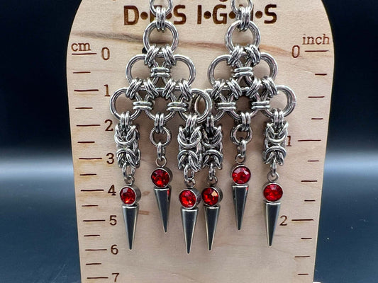 Red-Accented Spiked Stainless Steel Earrings, Stainless Steel Hooks Measure Approx. 3.75" in Length Including HookRegular price $39.99 CADRegular priceUnit price / per-
