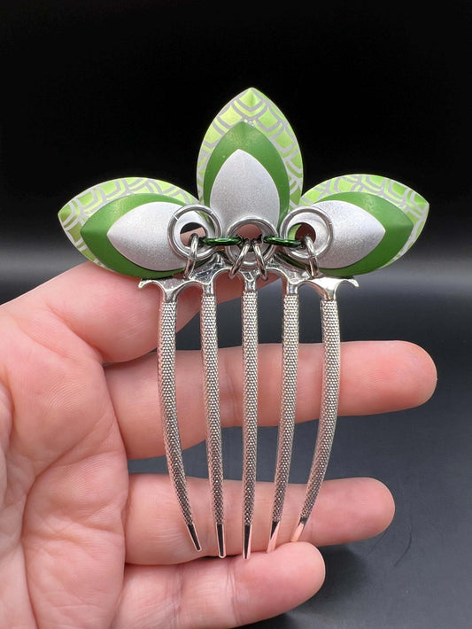 Large Green & Silver Engraved Scalemaille Fan Hair Comb Measuring approx. 4" LongRegular price $24.99 CADRegular priceUnit price / per-
