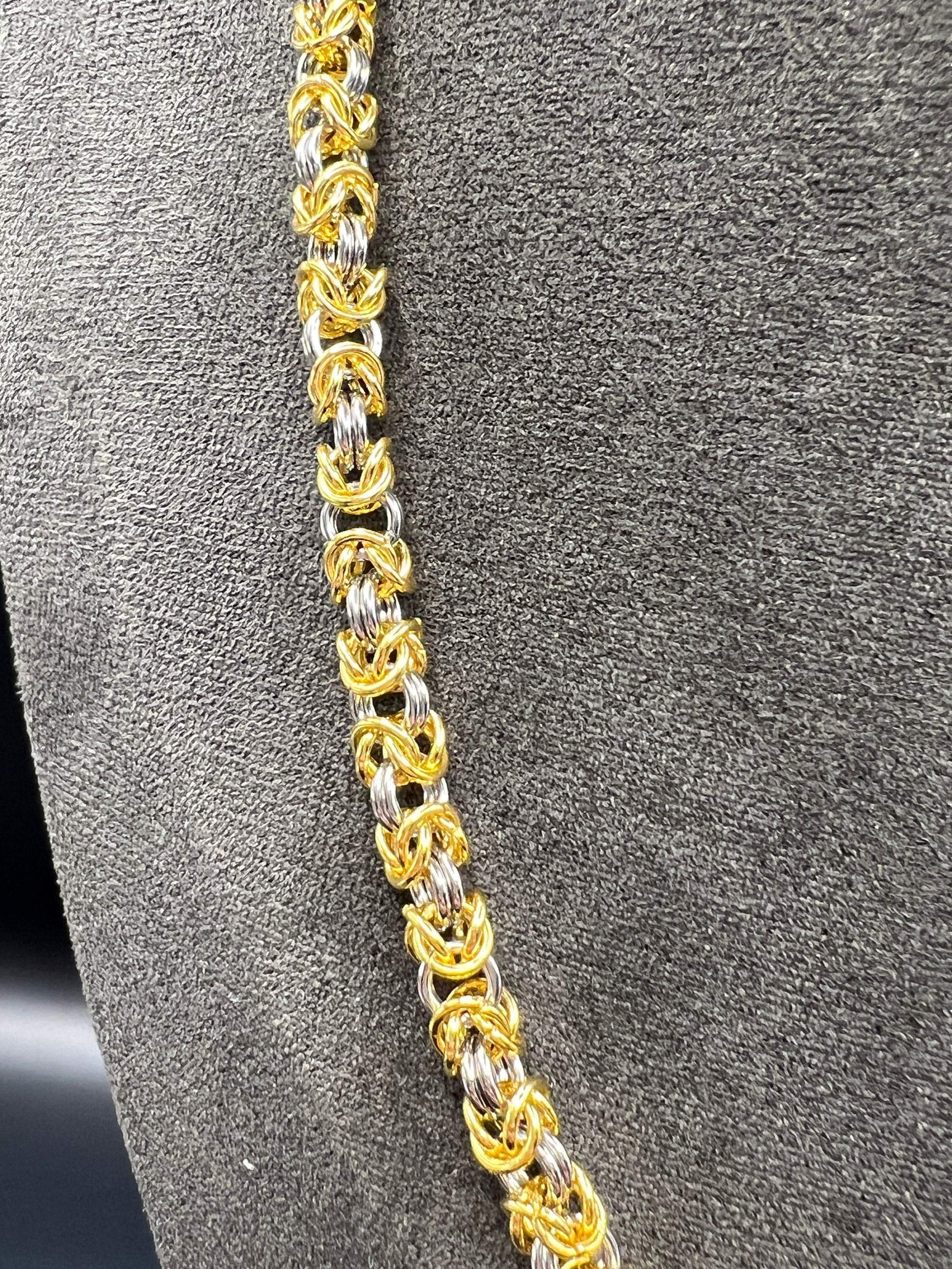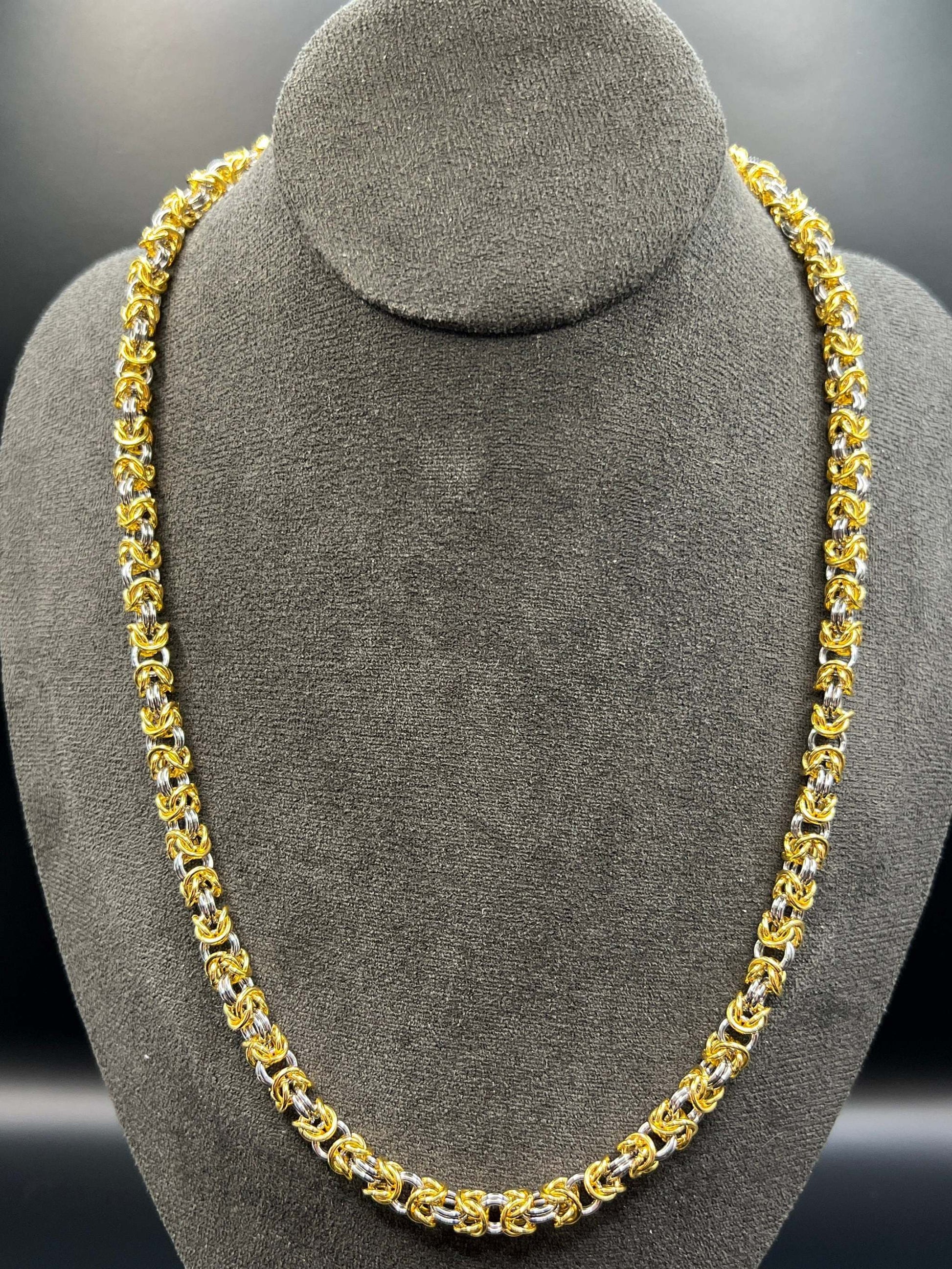 24k Gold-Plated & Natural Stainless Steel Chainmaille Necklace in Petite Byzantine, Measures Approx. 21.5" Long
