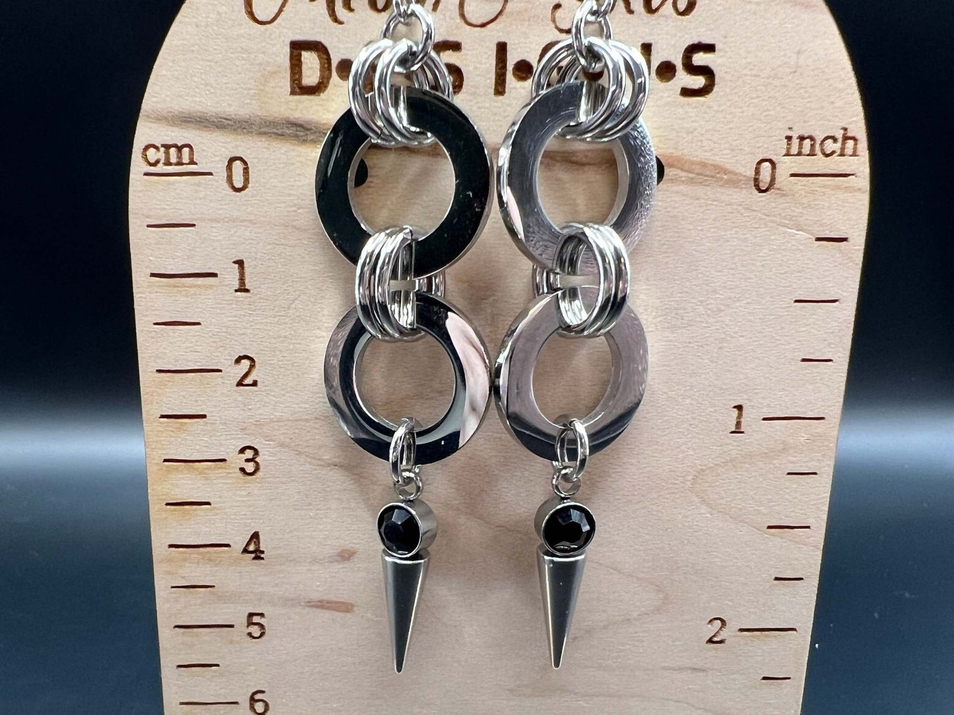 Black-Accented Spiked Stainless Steel Earrings, Stainless Steel Hooks Measure Approx. 3.25" in Length Including Hook