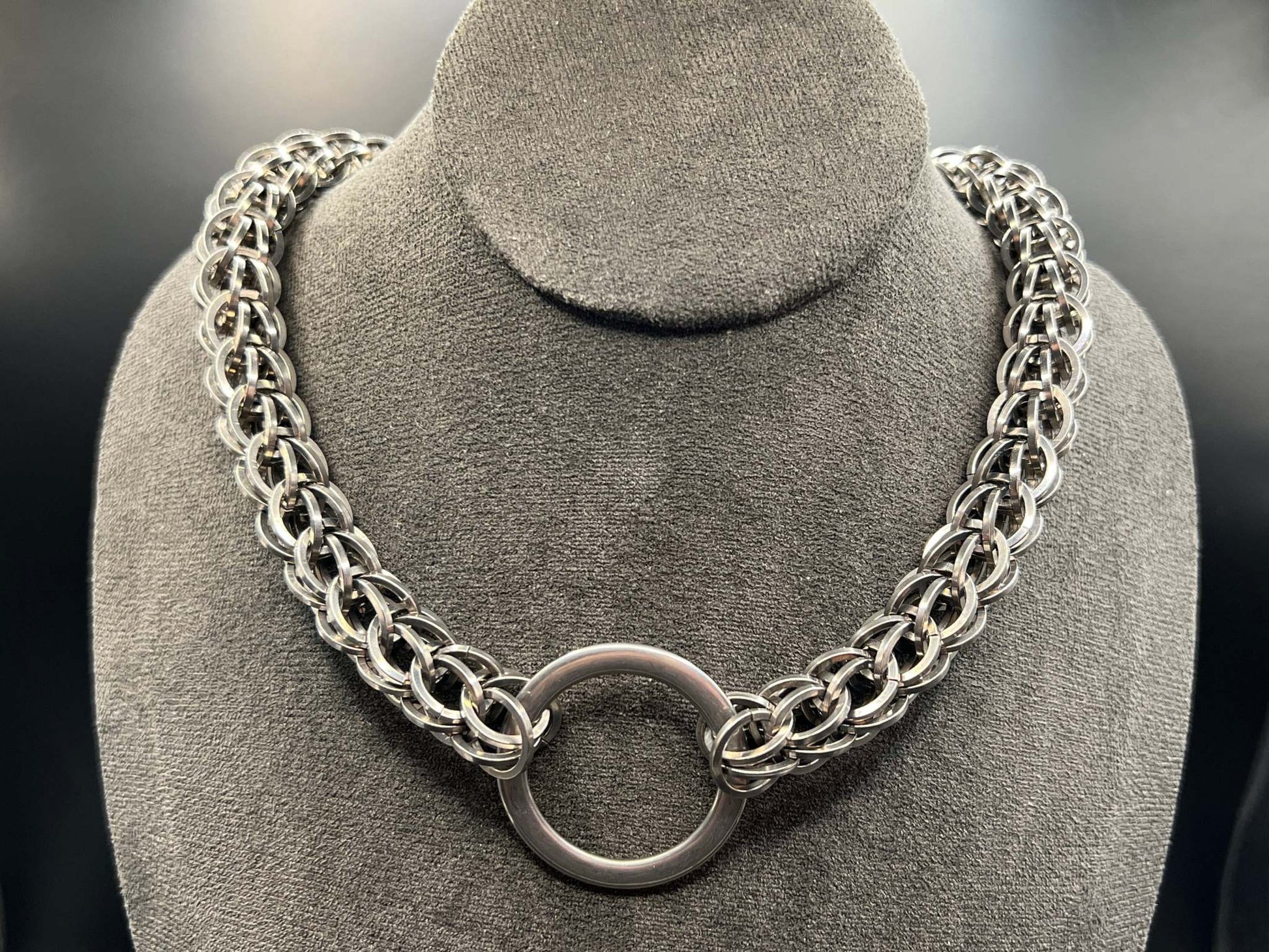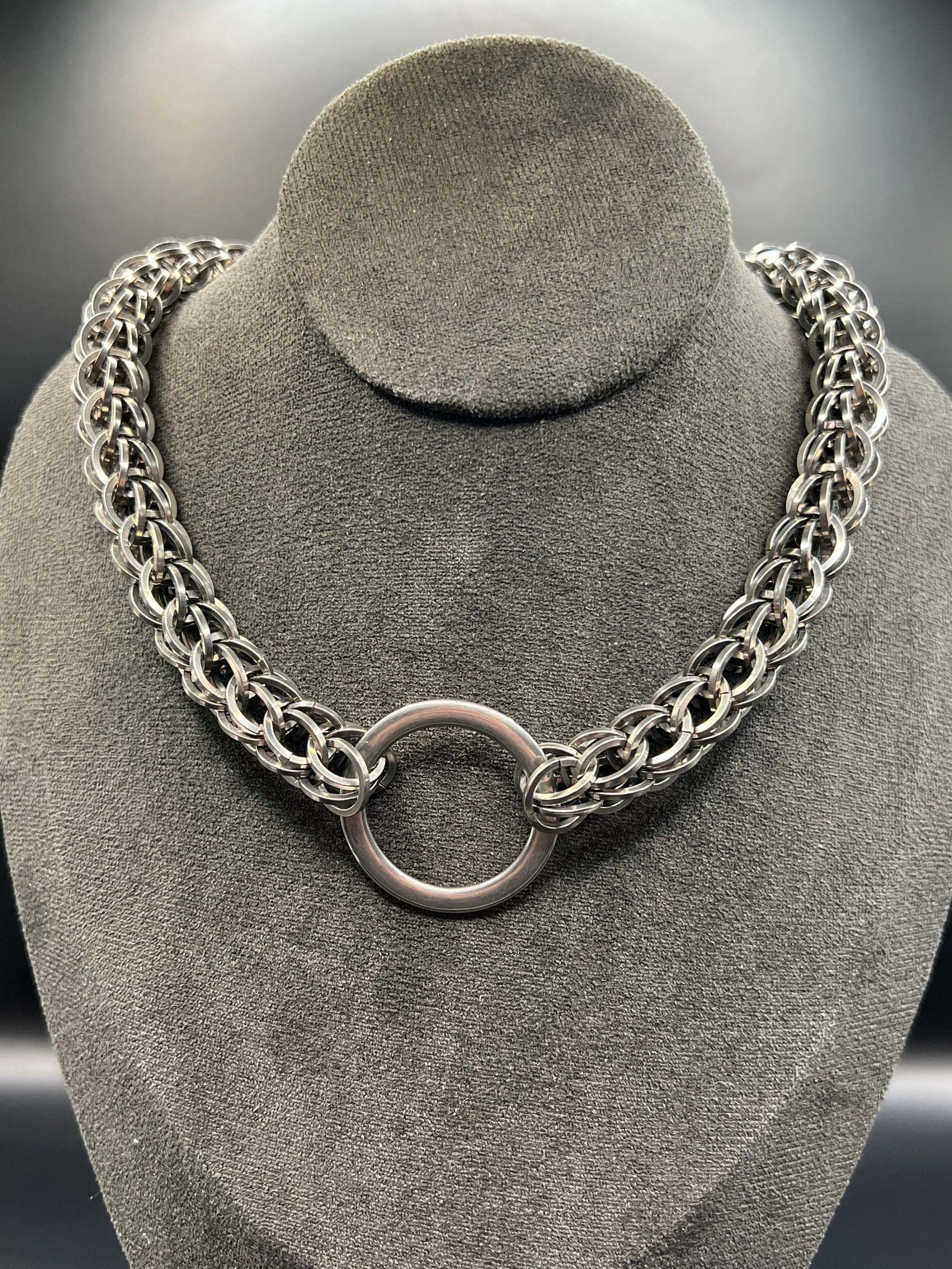 Chunky Square Wire Foxtail Solid Stainless Steel Chainmaille Choker Measuring Approx. 16" Long, Adjusts to Approx. 18"