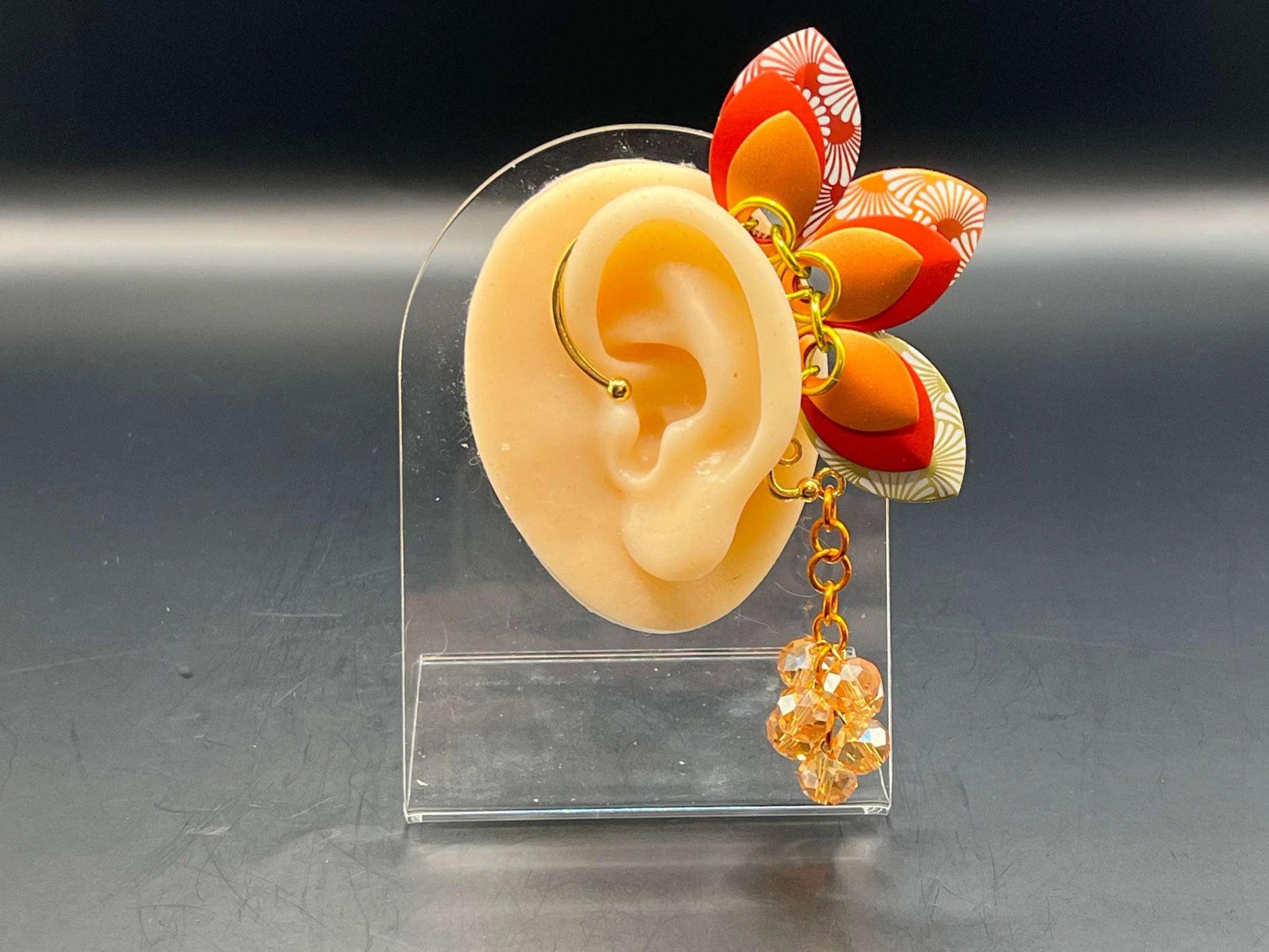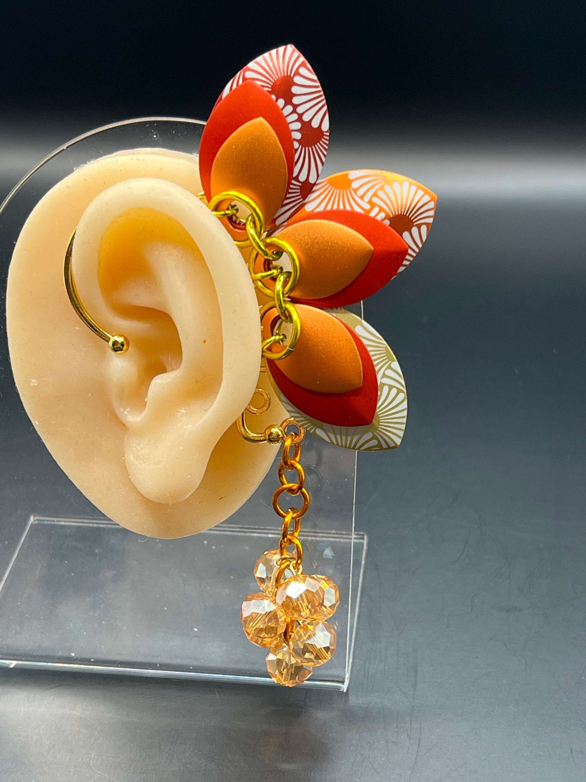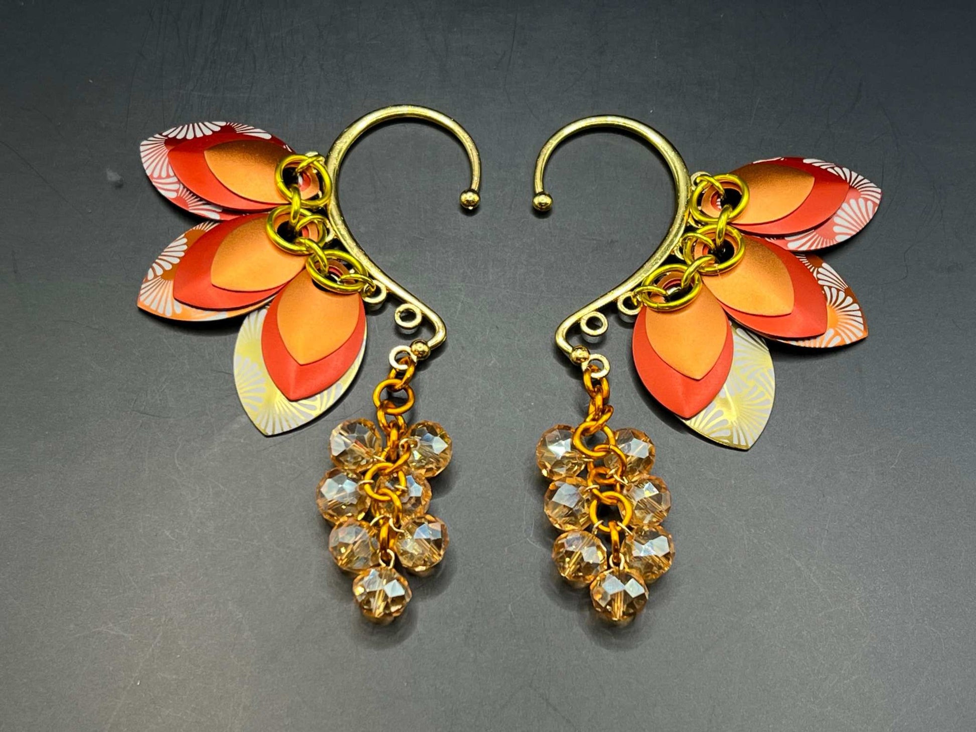 Flames - Set of 2 Scalemaille Ear Cuffs with Anodized Aluminum Laser Engraved Scales and Glass Beaded Detail