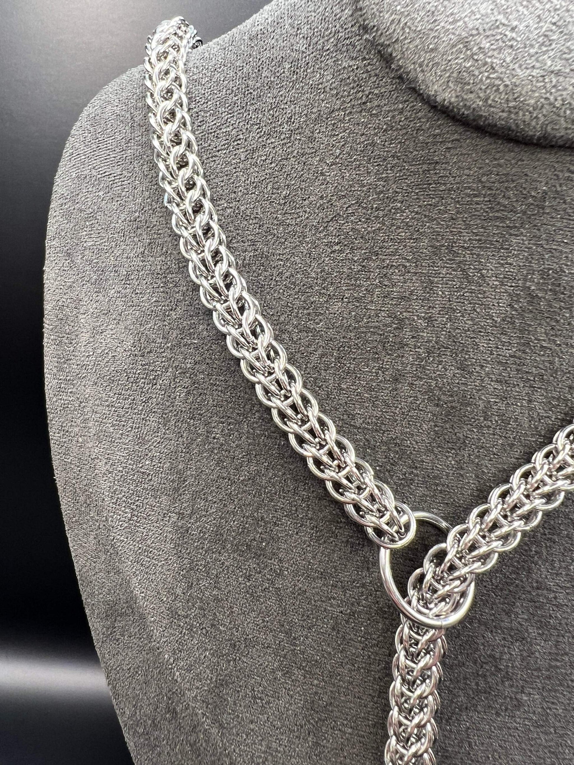 Foxtail Lariat Necklace with Snake Head at End - Measures Approx. 27" Long from Snake to Ring, Solid Stainless Steel with Nice Drape