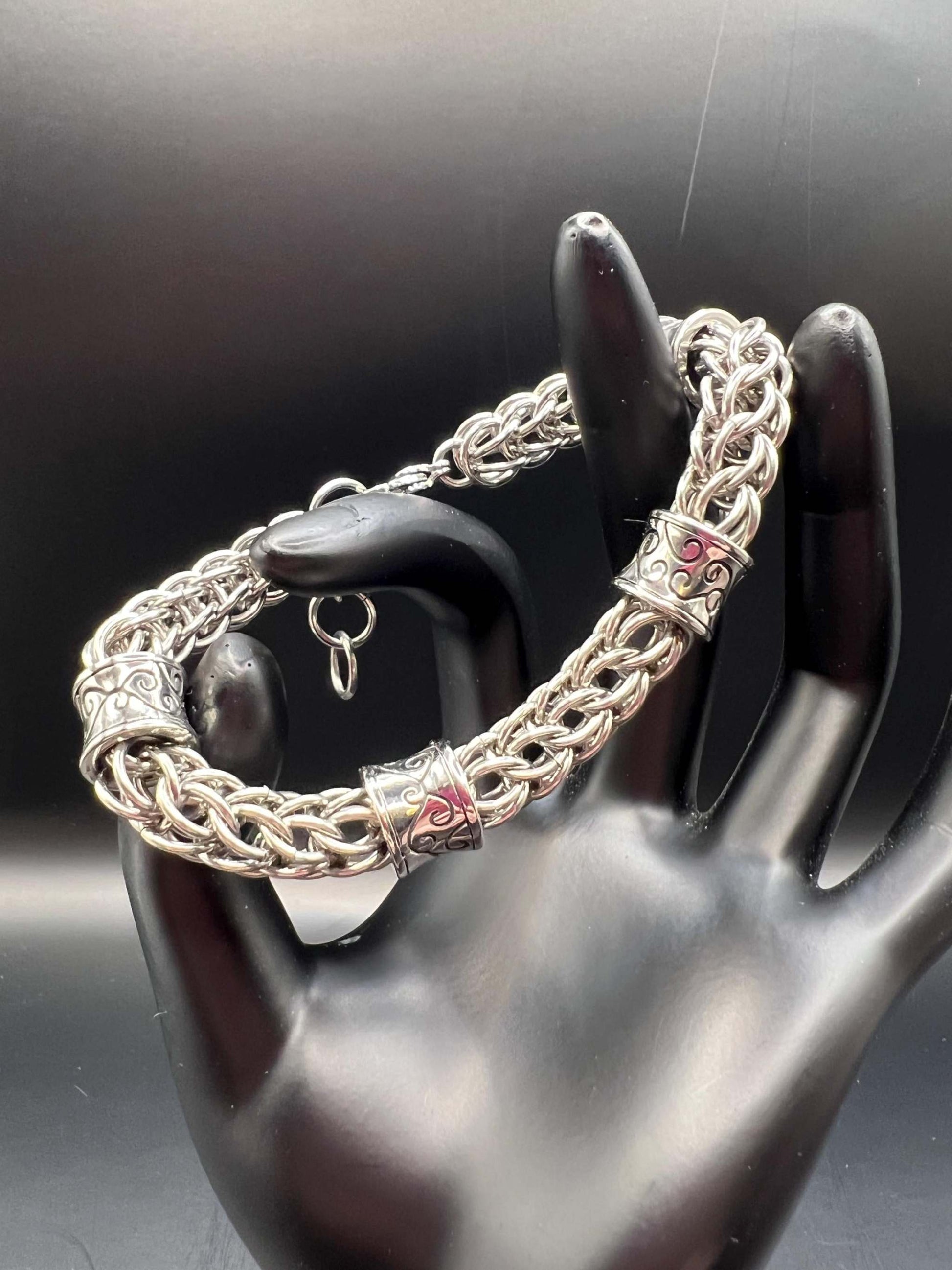 Foxtail with Beads Solid Stainless Steel Bracelet, Chainmaille, Stainless Steel Lobster Clasp, Adjustable 7.5-9" Long