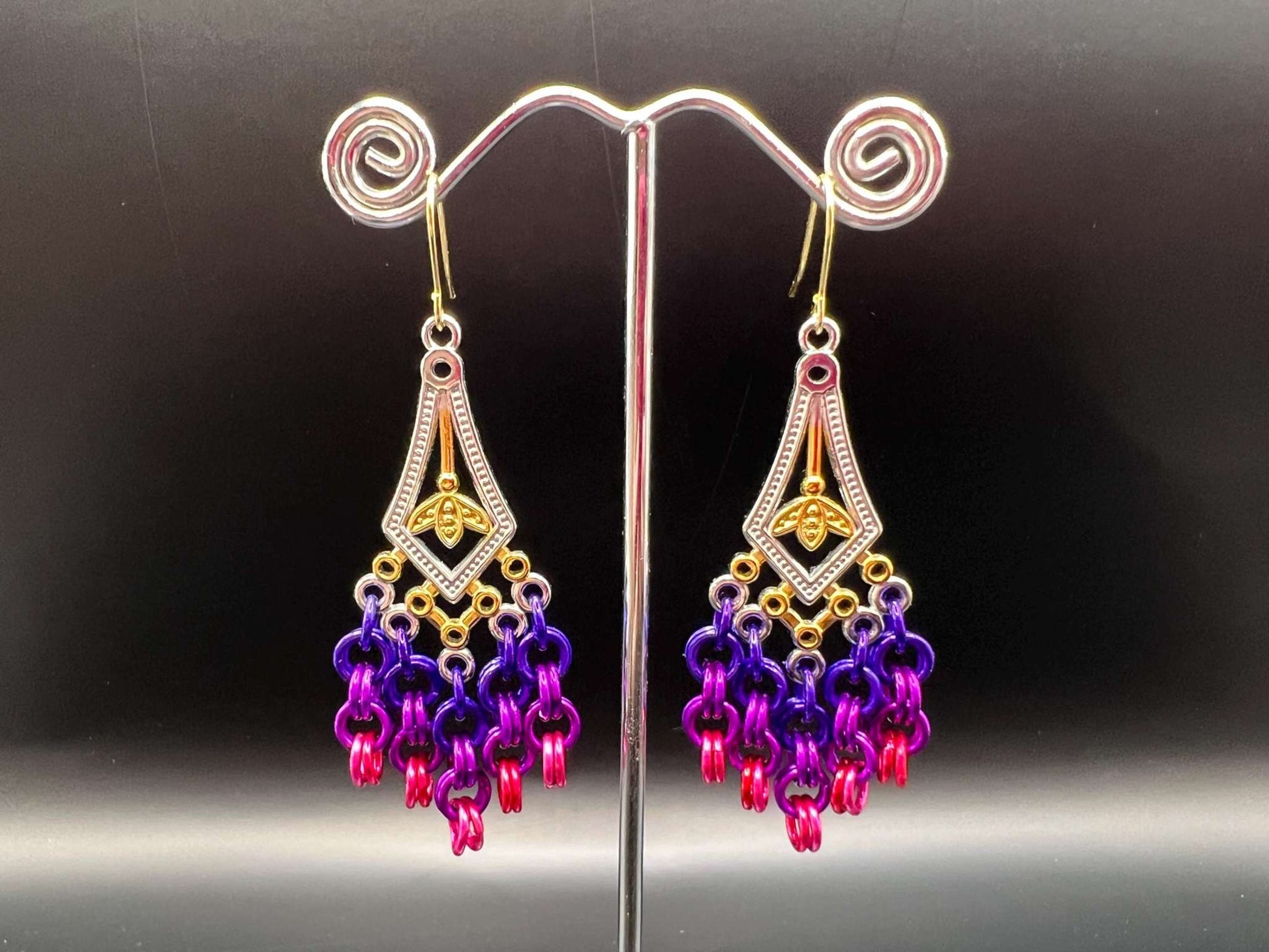Pink & Purple Chainmaille Chandelier Earrings, Surgical Steel Hooks, Earrings Measure Approx. 3" Long Inc. Hooks