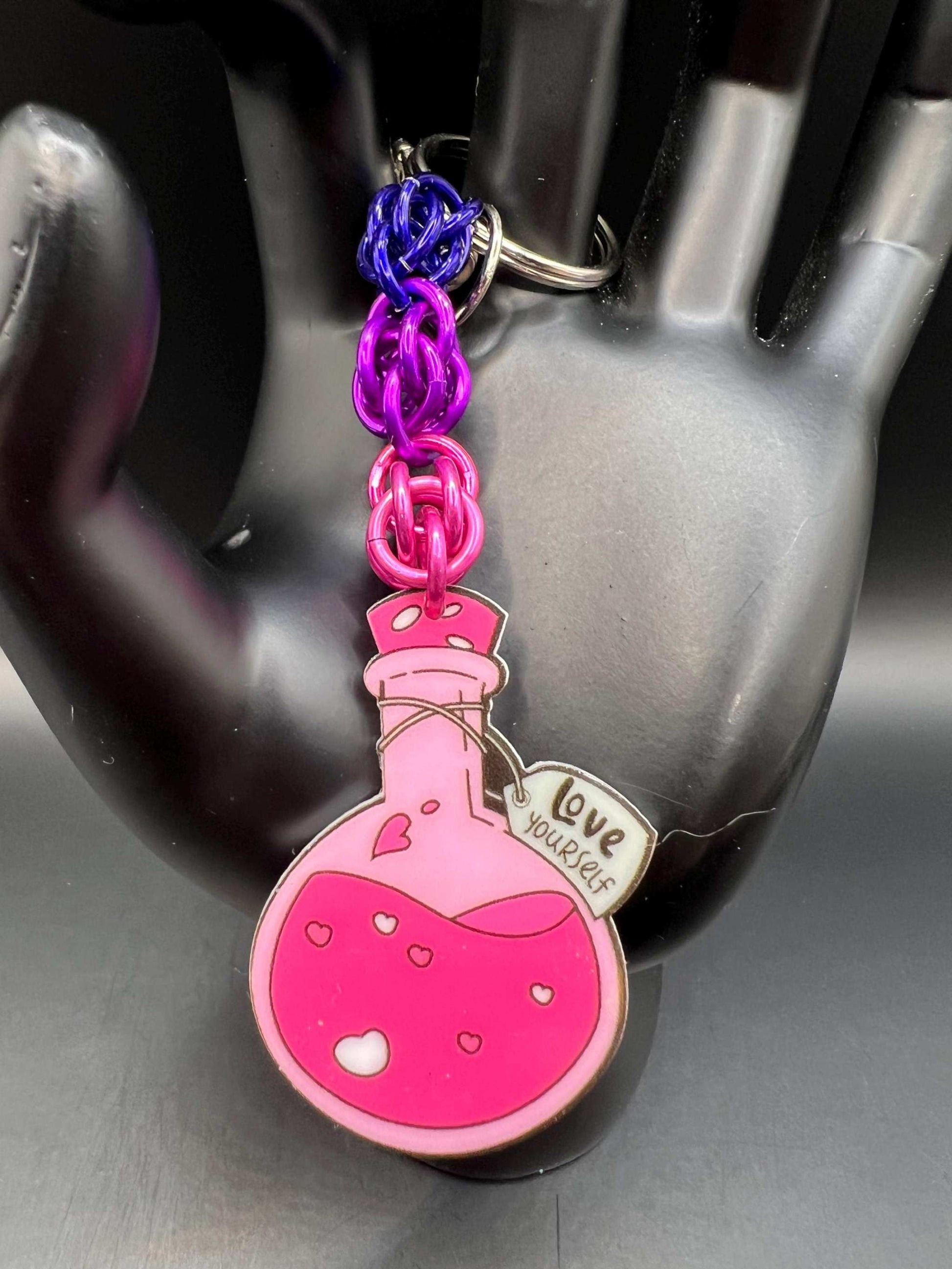 Pink & Purple Self Love Potion Bottle Chainmaille Keychain Measuring Approx. 4" Long