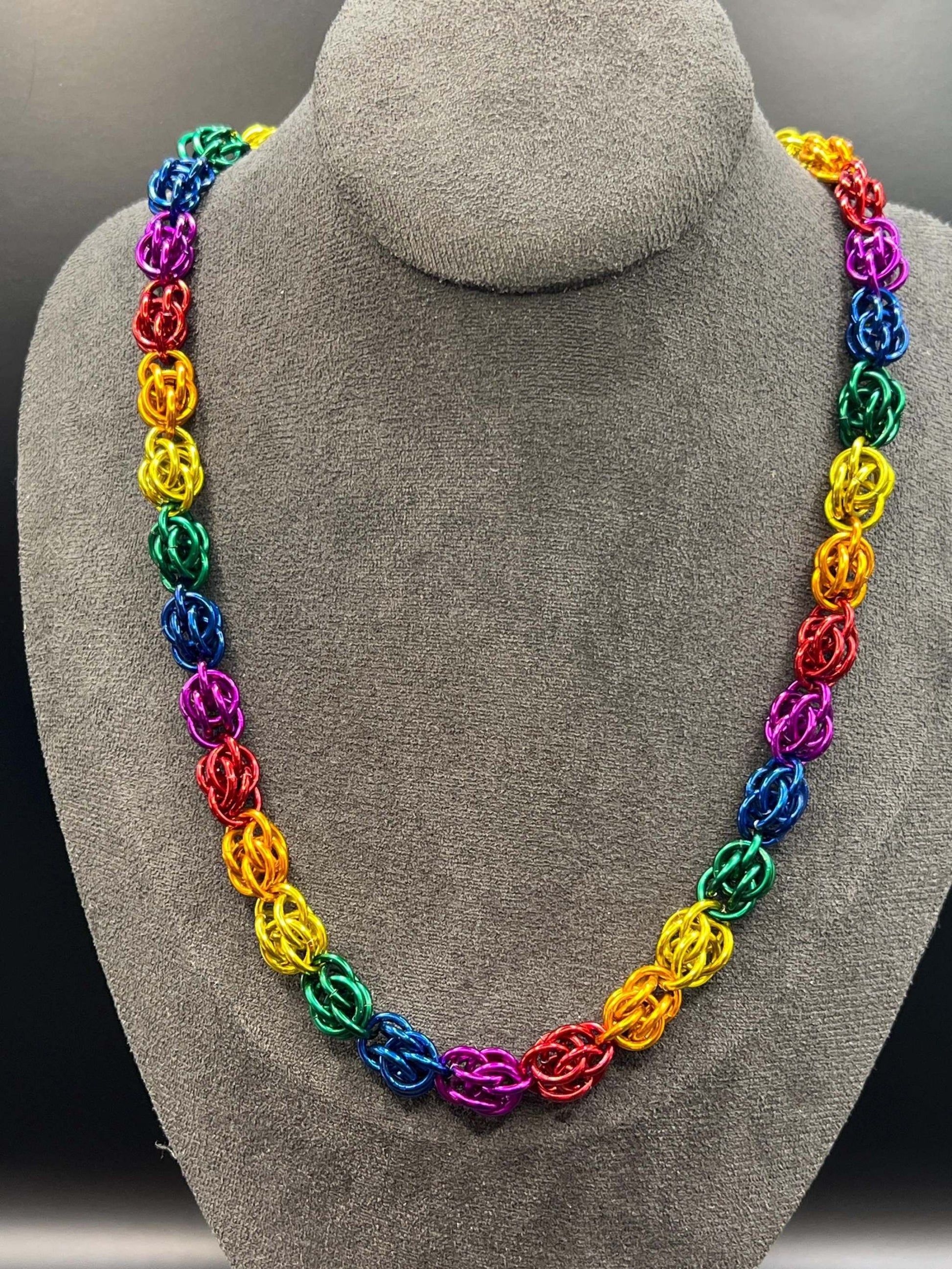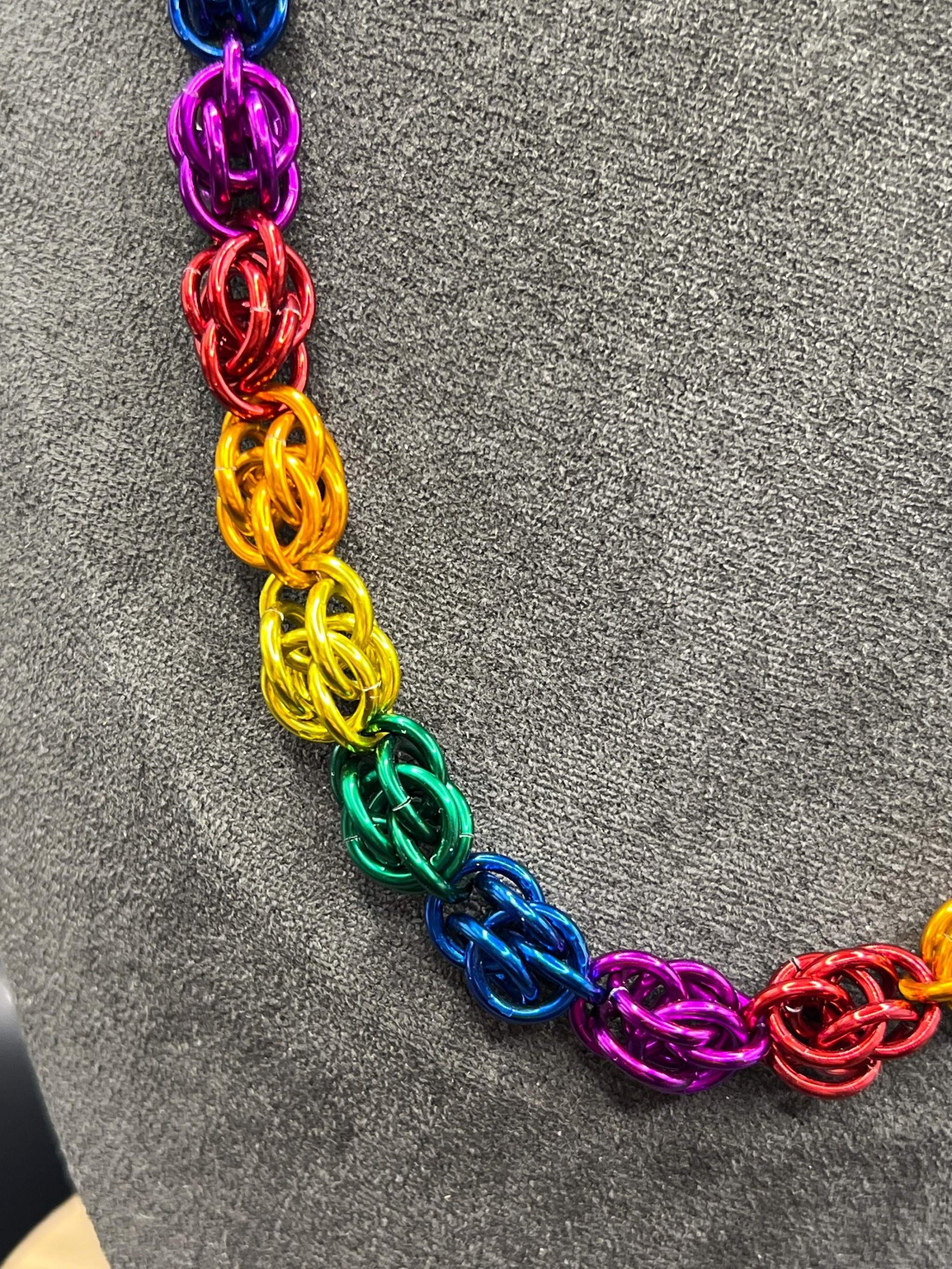 Rainbow Sweet Pea Chainmaille Necklace, Anodized Aluminum, Measures Approx. 20-21.5" Long